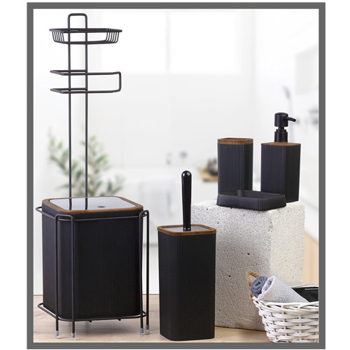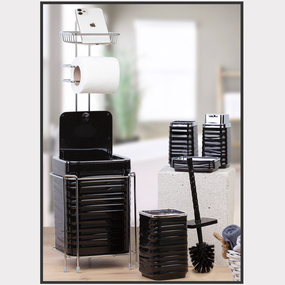 STOK KODU : OKY-1331 ÜRÜN KODU : AS-755S (DMD-123) YEDEKLİ WC KAĞITLIK SİYAH/SİYAH KOLİ İÇİ ADEDİ : 6 ÖLÇÜ : Yedekli Wc Kağıtlık & Çöp Kovası 20*20*65 Pamukluk 8,5*8,5*12,5 El Sabunluk 12,5*9*3 Sıvı Sabunluk 8*8*19 Wc Fırçalık 10*10*36,5